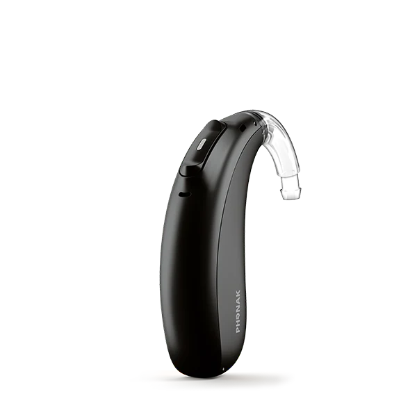 Phonak’s Smart Speech technology together with AutoSense™ 5.0 which uses artificial intelligence and machine learning algorithms to automatically adapt and optimise the sound processing in real-time. By continuously analysing the wearers acoustic environment and adjusting settings accordingly, AutoSense 5.0 ensures that speech and other important sounds are clear and natural, even in challenging listening situations.