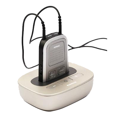 Provides Stereo Streaming of TV Audio through both hearing aids shaped to your hearing levels and doubles as a charging dock for your CommPilot.