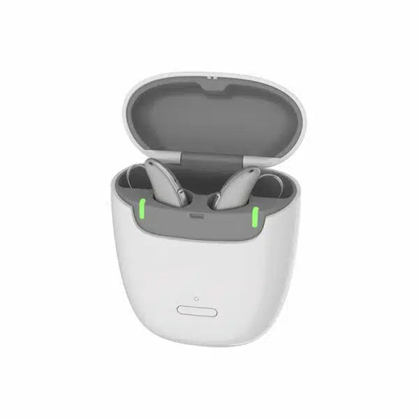 Equipped with a built-in power bank, this charger provides up to three full charges for a pair of hearing aids, ensuring you stay connected all day. The protective lid keeps your hearing aids secure and prevents dust from entering the charger.