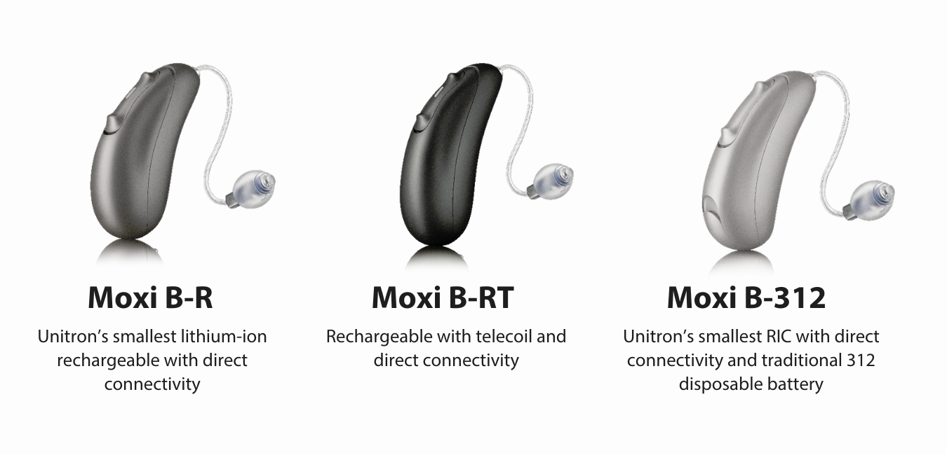 Unitron Moxi Blu is offered in Four technology levels and price points; Moxi Blu 9 (premium), Moxi Blu 7 (advanced), Moxi Blu 5 (Mid-Range) and Moxi Blu 3 (Basic).