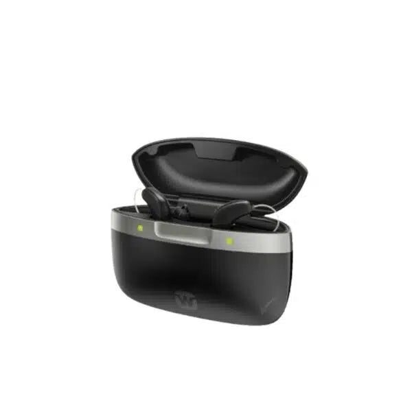 The Widex SmartRIC Portable Charger is compact, lightweight, and elegantly designed for on-the-go convenience. This smart-charging case provides five full charges, easily fitting into your pocket or small bag, and ensures hassle-free power for over a week.
